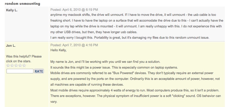 So, they send me the damned “Power sharing cable which is really just a USB cable that plugs into the drive. Didn’t work. So, a few weeks ago, I get this email from them: